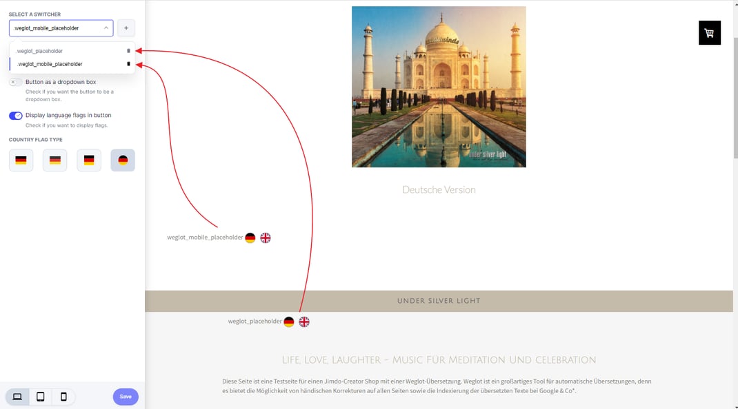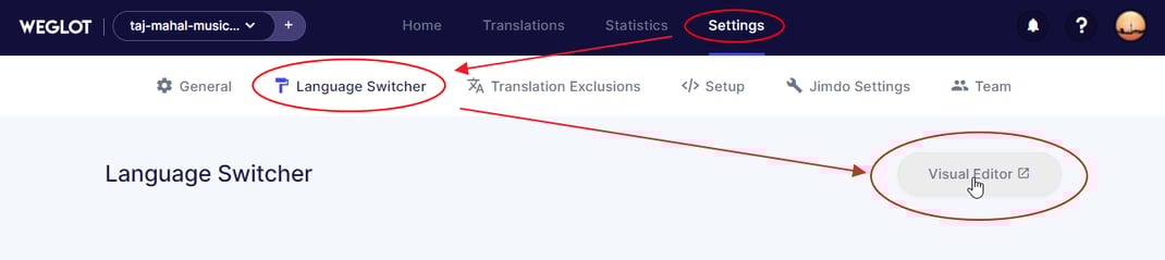 After that, the Weglot widget is available on the Jimdo page and can already be operated in visitor mode. Further settings can now also be made, such as: